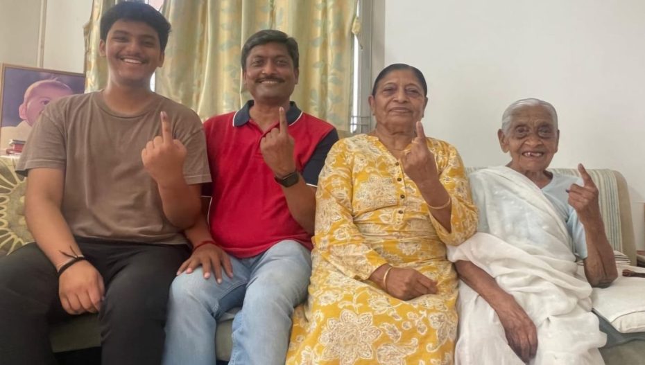 It’s a special day for the Shah family of Vadodara as four generations of the family vote together in the 2024 Lok Sabha election. Savita Mangaldas Shah (Savita Ba), who is 102 years old, cast her vote with family early in the morning on Tuesday.