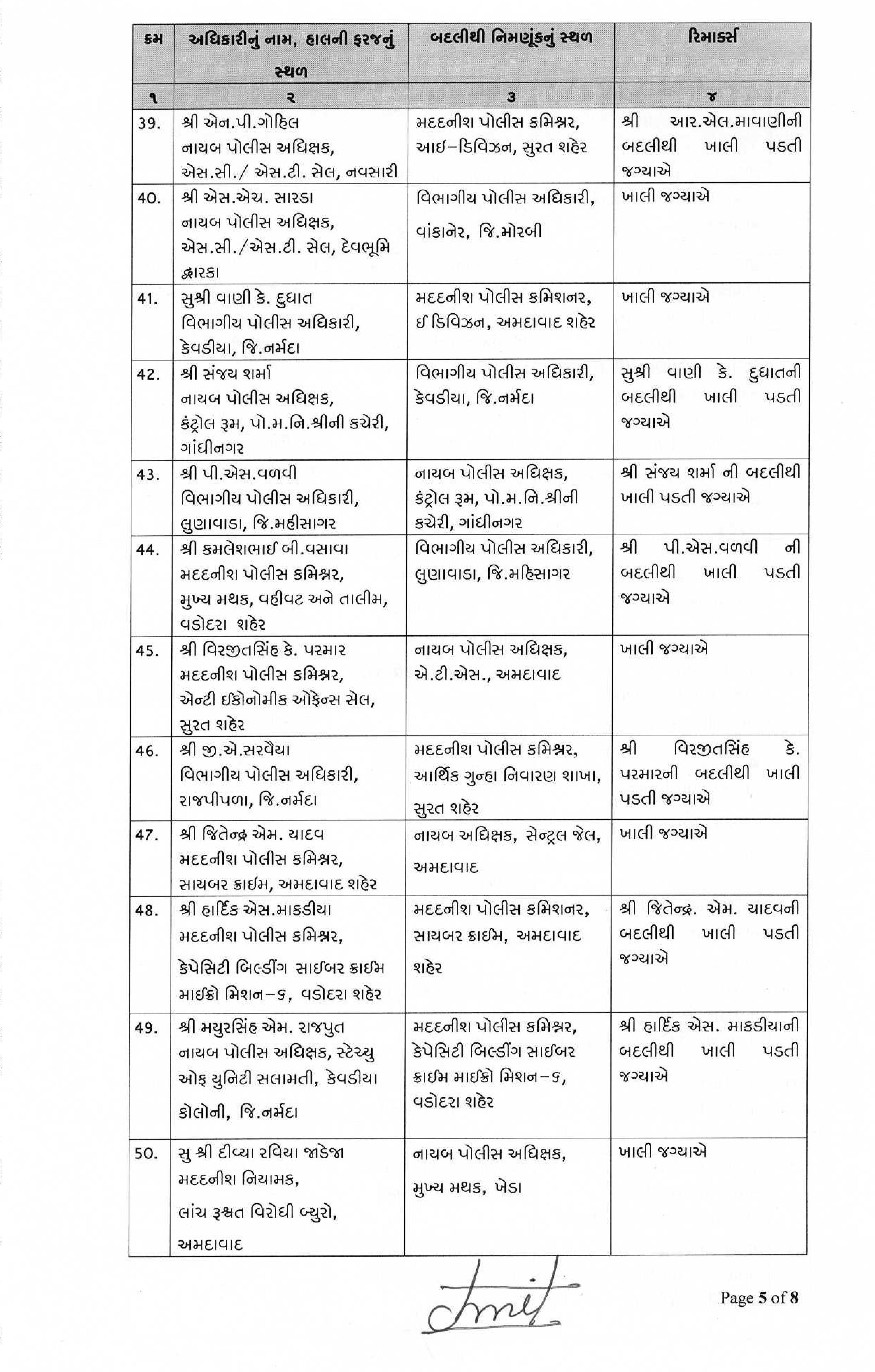 The reshuffle, which has been anticipated for some time, also saw 5 IPS officers being placed on the waiting list. Among those transferred are DSP Milap Patel and DSP Jitu Yadav of Cyber Crime from Ahmedabad, a city that holds strategic importance in the state.