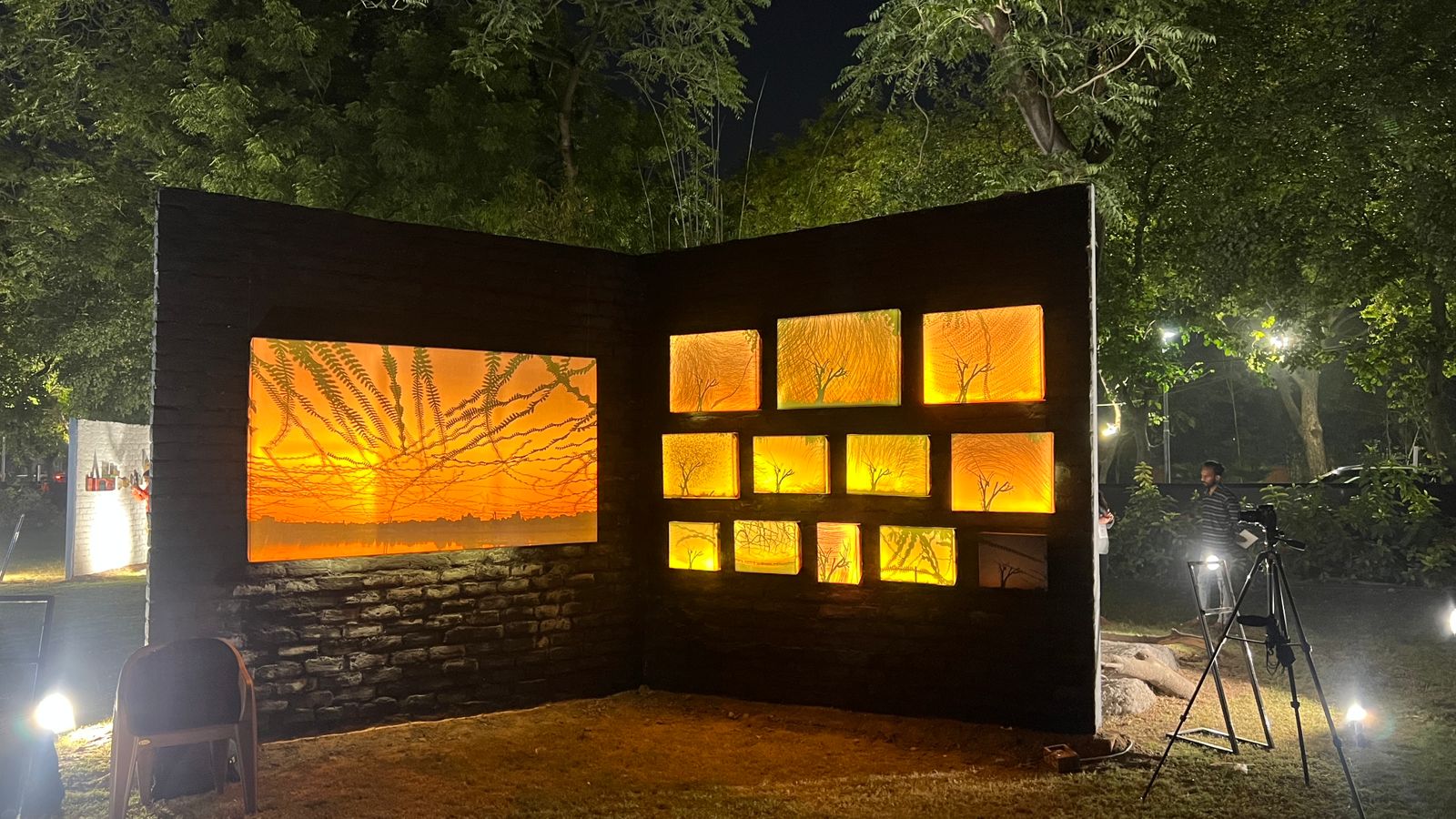 At both venues, a display of thought-provoking Visual Art Stories grabbed the attention of visitors. Siddharth Rathod from Ahmedabad presented ‘Signature of the Bird’, an experimental photographic installation that transforms bird flight patterns into artistic forms. By stitching together 25-60 simultaneous photos, Rathod created frames that mimic “signatures” in nature, particularly of starlings and bats. Sneha Lakhotia, a Kolkata-based artist, showcased ‘The Dreamcatcher’s Sneeze’, a whimsical yet critical exploration of society’s obsession with positivity, using dreamlike narratives to unearth hidden emotional stresses. Shilpeksh Khalorkar from Vadodara exhibited ‘Untamed Expansion’, an installation reflecting personal trauma and its ripple effects. His work juxtaposes decay and design to evoke a deeper understanding of anxiety and resilience.