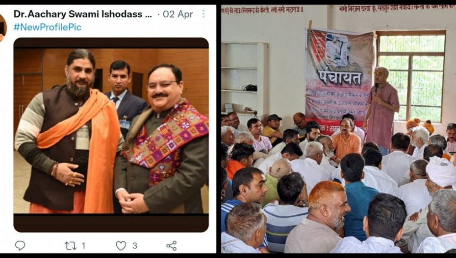 Of the three, Ishodass Om Ram has a significant online presence, with over four lakh followers on Instagram. He has shared pictures of himself with top BJP leaders like party president J.P. Nadda and Bhupender Yadav, currently minister for labour and environment in the Modi government. Apart from that, he has also posted pictures of himself with Kulbhushan Bharadwaj, the man who led the anti-namaz protests in Gurugram, and controversial Hindutva seer Paramhans Das. Recently, Paramhans Das was reported as threatening to set ablaze the Hyderabad MP Assaduddin Owaisi during a protest against the Udaipur murder.