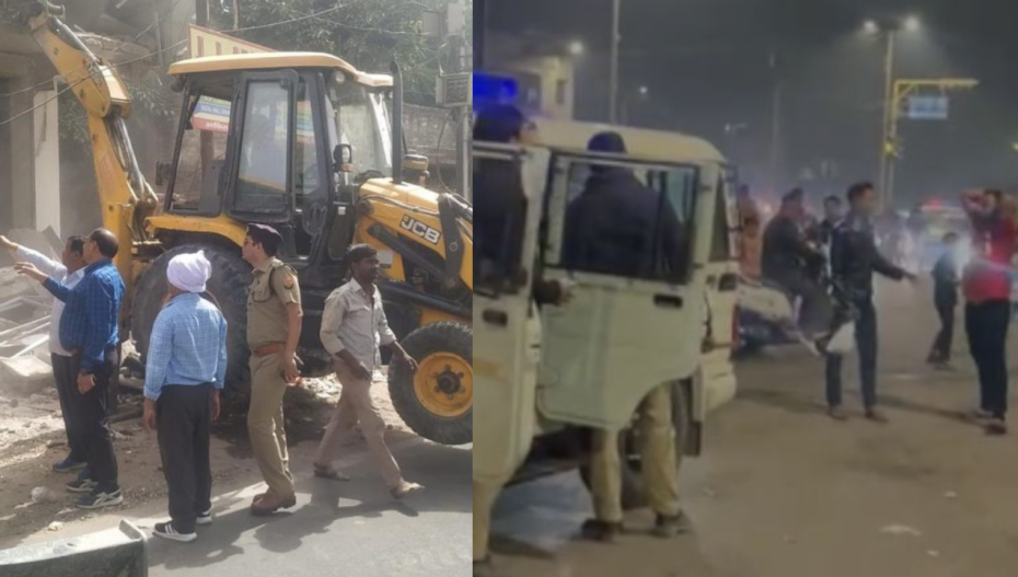 An AMC bulldozer, accompanied by 50 workers, tore down the encroachments made by the accused, who had shattered the police vehicle’s glass and threatened officers at Garib Nagar Chowk. CCTV cameras, coolers and air conditioners were discovered outside the properties.
