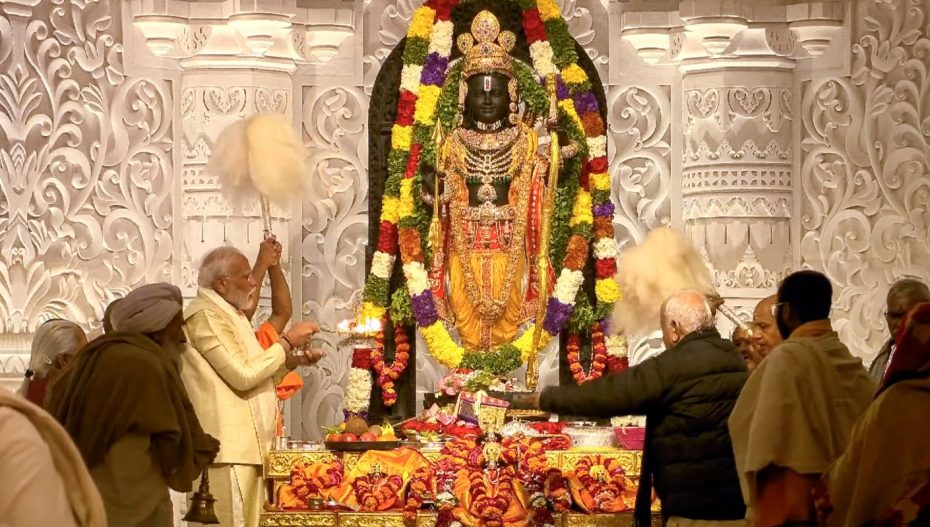 Prime Minister Narendra Modi performed the idol’s Pran Pratistha ceremony, which took place during the most sacred 84 seconds of the Abhijeet Muhurat from 12:29:03 pm to 12.30:35 pm.