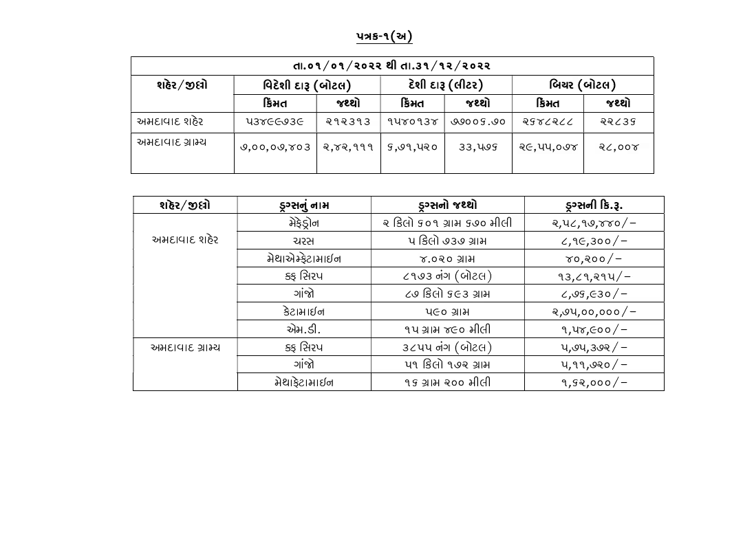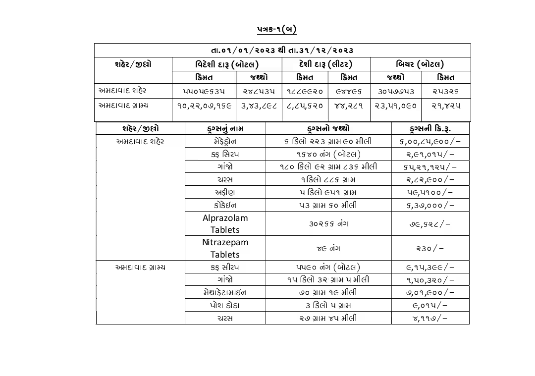 In 2022, domestic and foreign liquor worth Rs. 13 crores 13 lakhs were seized from Ahmedabad. The following year saw an increase, with seizures of domestic and foreign liquor worth more than 16 crores.