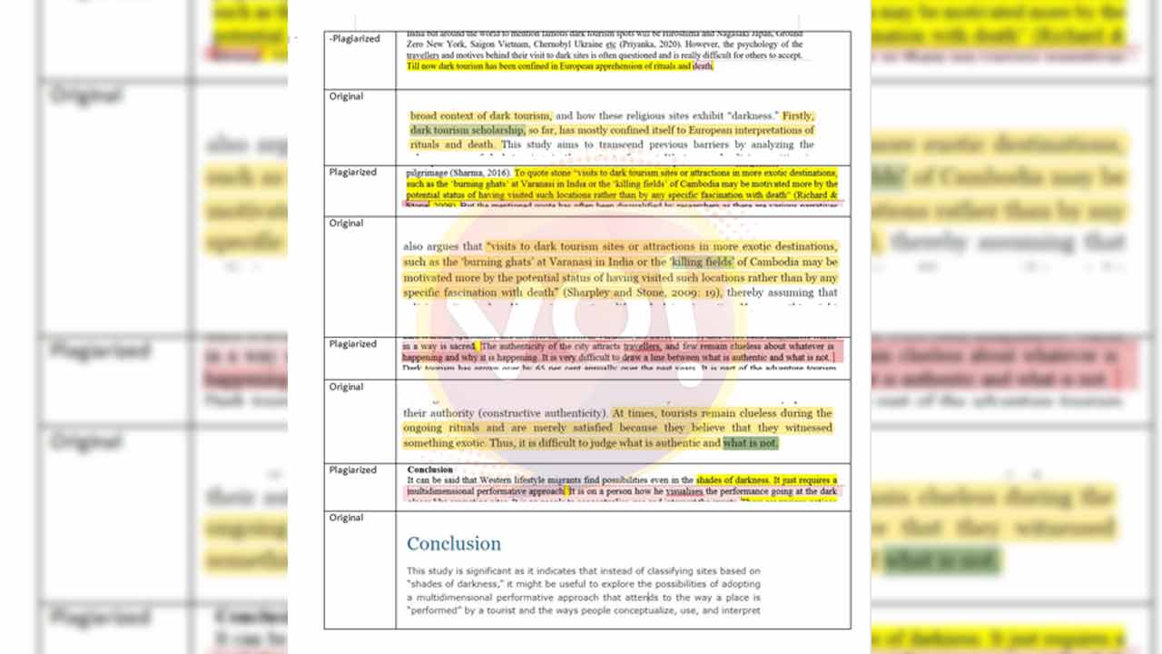 “Transcending dark tourism and embracing spirituality in the city of light ‘Varanasi'” written by a PhD scholar, Anshuman Rana, and a faculty member, Dr Naresh Kumar, of the CUG is almost a straight lift from the paper of a US-based tourism researcher Dr Nitisha Sharma.