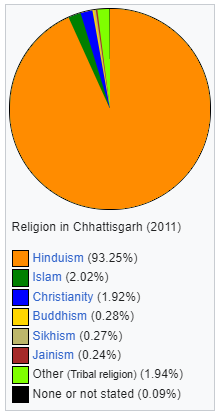 In Chhattisgarh, the forest area that covers nearly 40 per cent of the State is occupied by tribals. Gond, Jalba, Kamar, Oraon are the main tribes. Tribal population in Chhattisgarh is over 34%. Scheduled Caste form about 12% of the State population. Amongst outsiders, Odias, Bengalis and Marwaris are involved mainly in trade and commerce.
