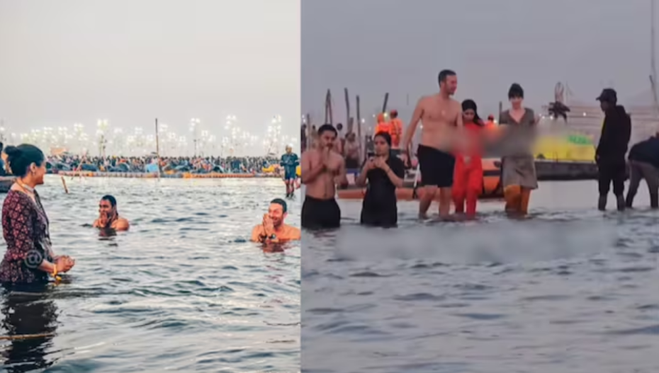 It is believed that Chris Martin and Dakota Johnson took an early morning dip in the confluence of the Ganga and Yamuna rivers. Earlier, another video of the two had gained attention, showing Chris Martin inside his car making funny faces while greeting devotees on his way back to the airport.