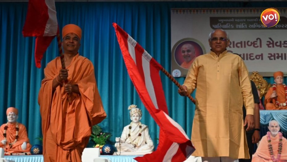 The Chief Minister of Gujarat Bhupendra Patel attended the programme to felicitate the volunteers of the Socio-religious organization BAPS at Ahmedabad. He was accompanied by his cabinet colleagues Jitu Vaghani and Jagdish Vishwakarma. The saints in the top hierarchy of the organisation welcomed them with Kothari swami garlanding the CM and the Education Minister.