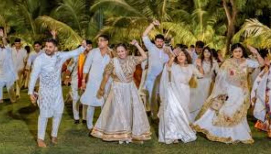 The venue is bathed in white décor, and participants are seen dancing in coordinated white outfits, creating a polished and curated visual aesthetic. What truly sets the scene apart, though, is the presence of a Starbucks stall within the premises — a detail that has sparked even more buzz online.