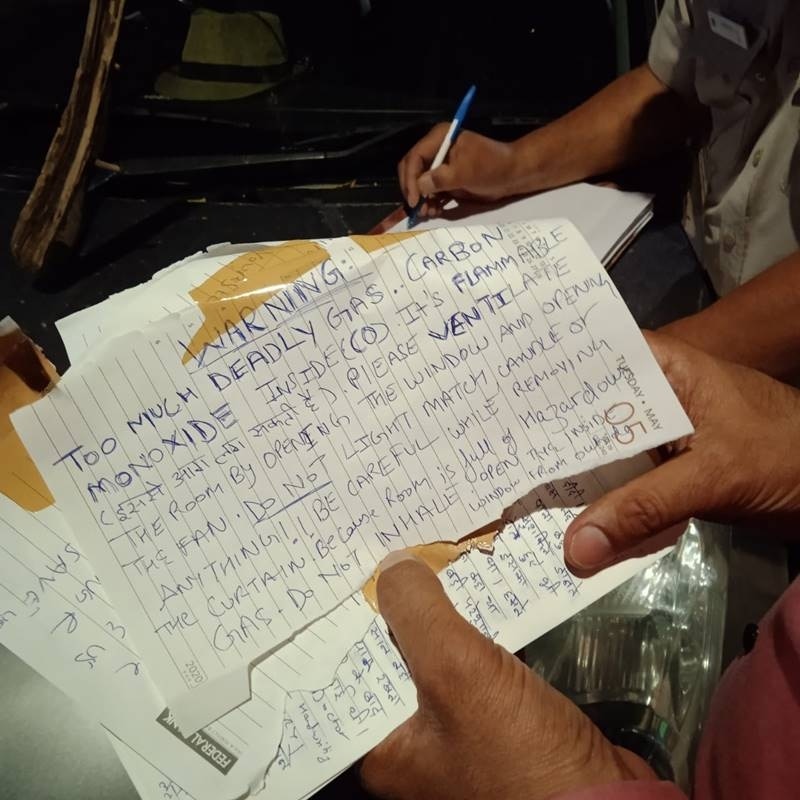 As the police entered the house, they found a note which read, “Too much deadly gas carbon monoxide inside. It’s flammable. Please ventilate the room by opening the window and opening the fan. Do not light a match, candle or anything!! Be careful while removing the curtain because the room is full of hazardous gas. Do not inhale.” This note was written to avoid any fire incident.