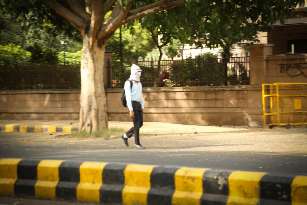 A man covers his face during extreme heat in Delhi. Photo: Atul Ashok Howale/The Wire