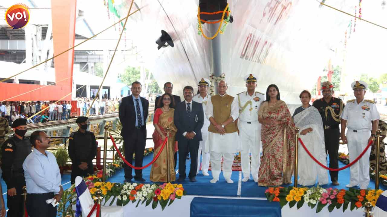 Union Defence Minister Rajnath Singh on Friday launched Y-3023 Dunagiri in Kolkata. Dunagiri is a Project 17A frigate built by Garden Reach Shipbuilders Limited (GRSE). Admiral R Hari Kumar, Chief of Naval Staff and other senior officers from the Indian Navy and Ministry of Defence attended the ceremony.