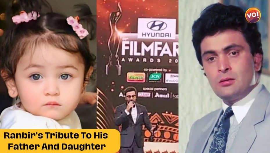 Ranbir Kapoor, the acclaimed actor, paid homage to his father, Rishi Kapoor, and his daughter, Raha, during his acceptance speech at the Filmfare Awards in Gujarat. Kapoor, who was honored with the Best Actor award for his performance in the film “Animal,” dedicated his victory to his father and daughter. A fan page shared a video of Kapoor receiving his award.