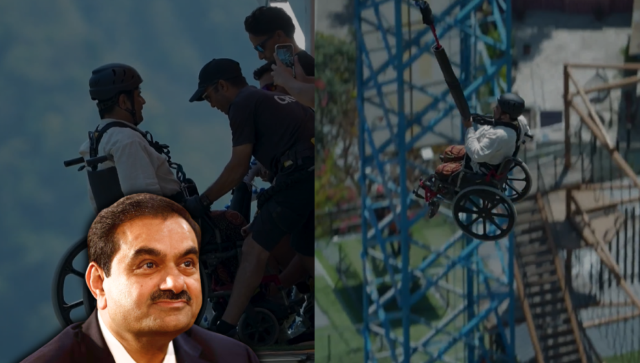 Adani Group chairman Gautam Adani has shared a video of a group employee, Kay Mehta, performing a bungee jump in Rishikesh while harnessed with his wheelchair.