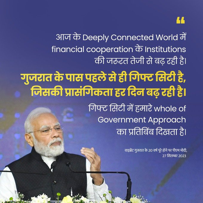 Talking about the growing need for institutions of financial cooperation, the Prime Minister commented on the increasing relevance of GiFT City. “GIFT City reflects the whole government approach. Here the Centre, state and IFSC authorities work together to create the best regulatory environment in the world. We should intensify efforts to make it a globally competitive financial marketplace.