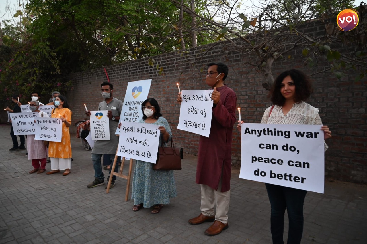 अहमदाबाद के नागरिक तब यूक्रेन के नागरिकों के प्रति संवेदना व्यक्त करने और यूक्रेन में शांति बहाली की प्रार्थना करने के लिए एकत्र हुए। उन्होंने मोमबत्तियां जलाईं और यूक्रेन और रूस के बीच युद्ध का विरोध करने वालों के प्रति अपना सम्मान और समर्थन दर्शाया।