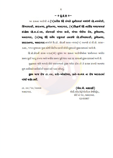 न्यायिक कार्यवाही दौरान एडिशनल चीफ मेट्रोपोलिटन मजिस्ट्रेट एमए माकरणी (Additional Chief Metropolitan Magistrate MA Makarni) की अदालत में सरकार की तरफ से एपीपी भावीनी जानी( APP BHAVINI JANI )ने दलील की जबकि आरोपियों की तरफ से कोई वकील पेश नहीं हुआ। एडिशनल चीफ मेट्रोपोलिटन मजिस्ट्रेट एमए माकरणी ने अपने फैसले में कहा कि फरियादी ने अपनी गवाही के दौरान कहा है कि घटना के कुछ समय अदालत के माध्यम से उन्हें उनके गहने मिल गए है , लेकिन उन्हें नहीं पता कि चोरी किसने किये थे , वह मामले को नहीं चलाना चाहते और ना कि उनके पास कोई और सबूत हैं। इसलिए केवल फरियादी की शंका के आधार पर दोषी नहीं ठहराया जा सकता , जबकि इस मामले में फरियादी से प्रति सवाल भी नहीं किये गए हैं। आरोपियों का कोई आपराधिक इतिहास भी नहीं है।