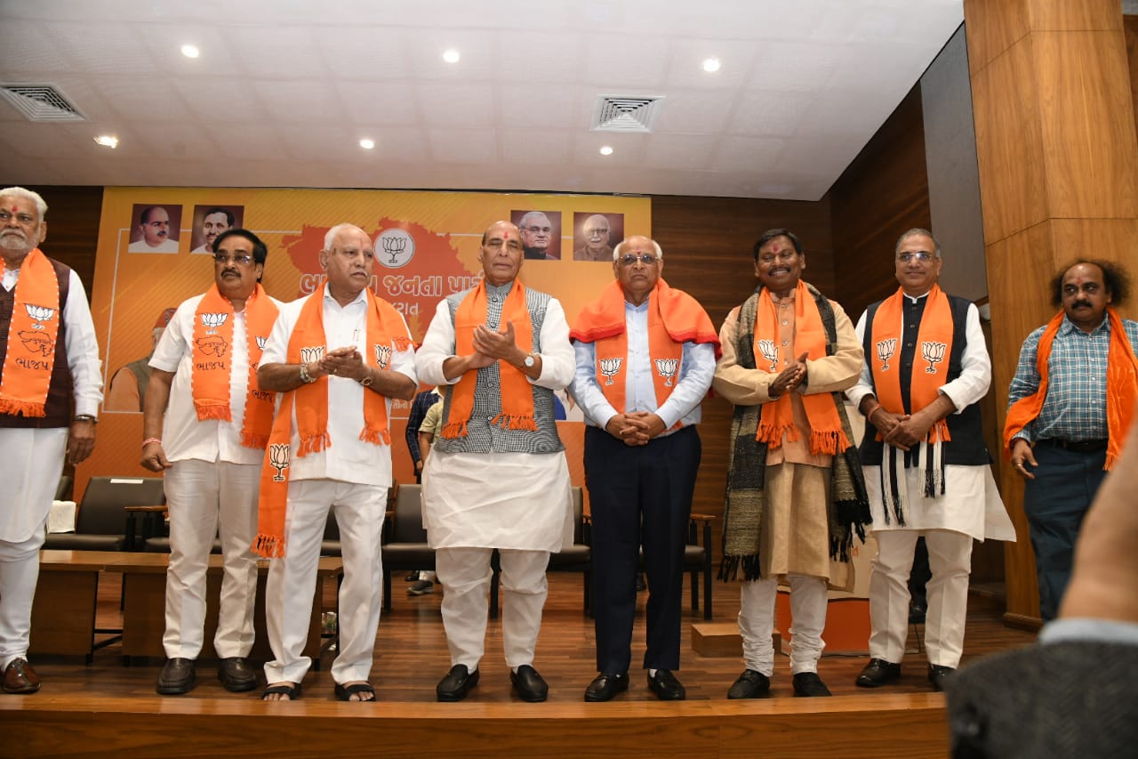 11 . 1 5 बजे केंद्रीय पर्यवेक्षक राजनाथ सिंह ,बीएस येदुरप्पा , और झारखंड के पूर्व मुख्यमंत्री अर्जुन मुंडा पहुंचे। भाजपा प्रदेश अध्यक्ष सी आर पाटिल उसके बाद मुख्यमंत्री के साथ आये। स्वागत और मुख्यमंत्री के चुनाव से ज्यादा वरिष्ठ मंत्रियों की दिलचस्पी मंत्रिमंडल के संभावित नामों को लेकर रही।