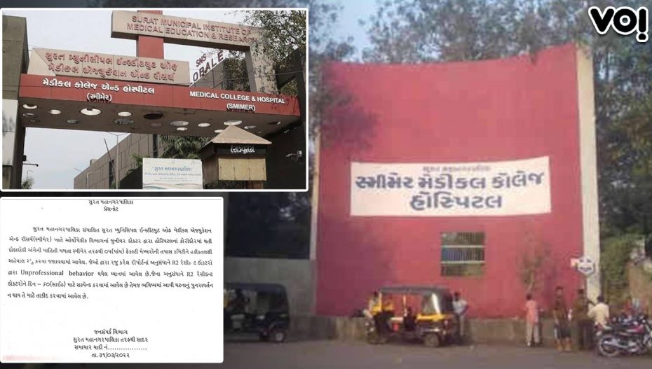 सूरत नगर निगम द्वारा संचालित स्मीमेर अस्पताल में हड्डी रोग विभाग के एक जूनियर डॉक्टर को दौड़ा कर रैगिंग किये जाने के मामले में चार वरिष्ठ डॉक्टरों को 60 दिन के लिए निलंबित कर दिया गया। जूनियर डॉक्टरों के उत्पीड़न के आरोपों की जांच के लिए एक जांच समिति का गठन किया गया था। जिसकी रिपोर्ट में खुलासा हुआ कि पाठ्यक्रम का हिस्सा नहीं होने के बावजूद जूनियर डॉक्टरों को दौड़ाया गया । एक जूनियर डॉक्टर ने स्मीमेर अस्पताल के डीन के साथ-साथ अन्य वरिष्ठ डॉक्टरों के पास शिकायत दर्ज कराई थी। जिसके आधार पर जाँच समिति गठित की गयी थी , जान समिति ने अपनी रिपोर्ट ने चार डॉक्टरों को रैकिंग का रैकिंग का दोषी पाते उन्हें 60 दिन के लिए निलंबित करने का फैसला लिया।