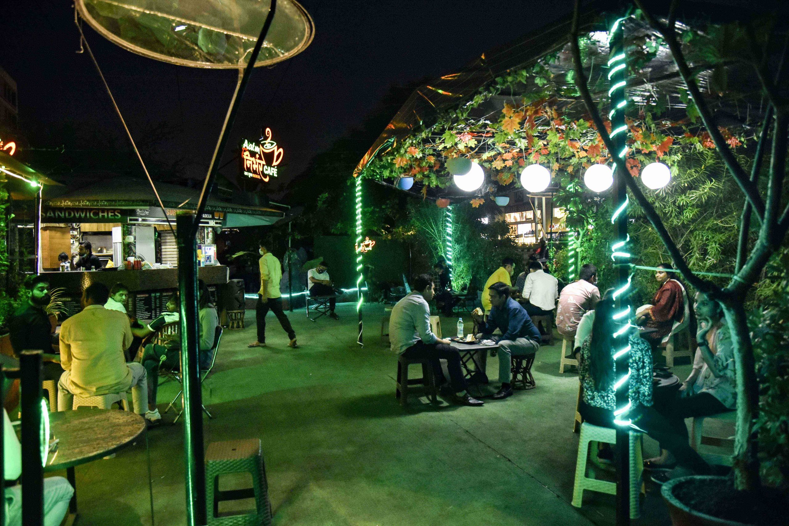 राजमार्ग और सर्विस रोड के बीच सैंडविच कैफे के कब्जे वाले क्षेत्र को मूल रूप से अहमदाबाद शहरी विकास प्राधिकरण द्वारा फूड ट्रकों के लिए एक साइट के रूप में डिजाइन किया गया था। वास्तव में, अपना अड्डा जैसे कई वर्तमान कैफे, फूड ट्रैक के रूप में शुरू हुए। जब एएमसी ने अधिग्रहण कर लिया और साइटों की नीलामी की तो प्रारूप को रसोई के लिए एक छोटे से निर्मित स्थान में बदल दिया गया, जो बैठने के लिए एक बड़े खुले क्षेत्र से घिरा हुआ था। ये आउटडोर कैफे जल्द ही विशेष रूप से शाम के समय कूल हैंग आउट स्थान बन जाएंगे और अहमदाबाद के सबसे आधुनिक लोगों से आबाद होंगे। “कैफे का आकर्षण यह है कि वे अंतरंग हैं। यहां लोगों ने नए दोस्त बनाए इसलिए सामाजिक दूरी के नियमों ने वास्तव में संस्कृति को प्रभावित किया,” -सेतु गोयल कहते हैं।