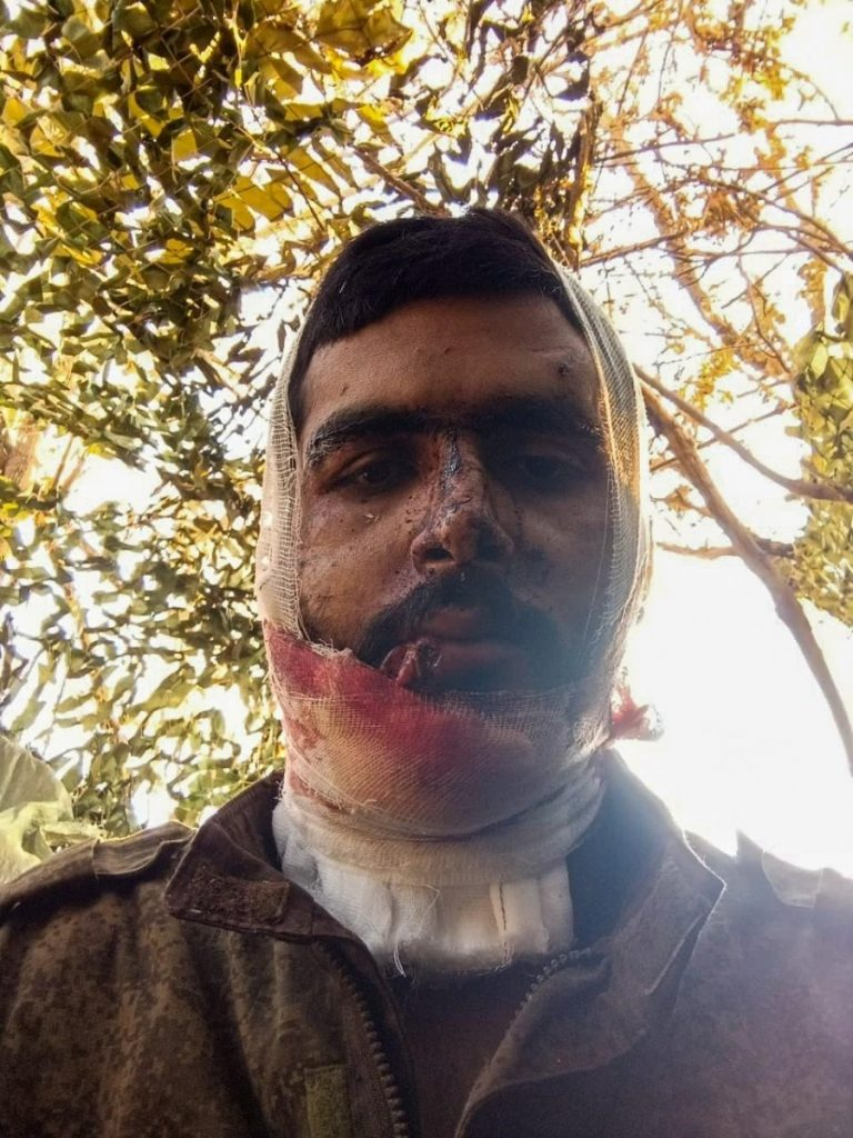 द वायर से बात करते हुए गुरप्रीत के भाई ने कहा कि जिस तरह से वह फ्रंटलाइन पर स्थिति का वर्णन करता है, वह रोंगटे खड़े कर देने वाला है। उन्होंने कहा, “वे शवों को उठाते भी नहीं हैं। उन्हें सड़ने के लिए छोड़ दिया जाता है या कुत्ते उन्हें खा जाते हैं।” दस दिन बाद हर्ष ने हमें गुरप्रीत के ठिकाने के बारे में उसकी तस्वीरें बताईं, जहां वह ड्रोन हमले में बुरी तरह घायल हो गया था और अस्पताल में भर्ती था।