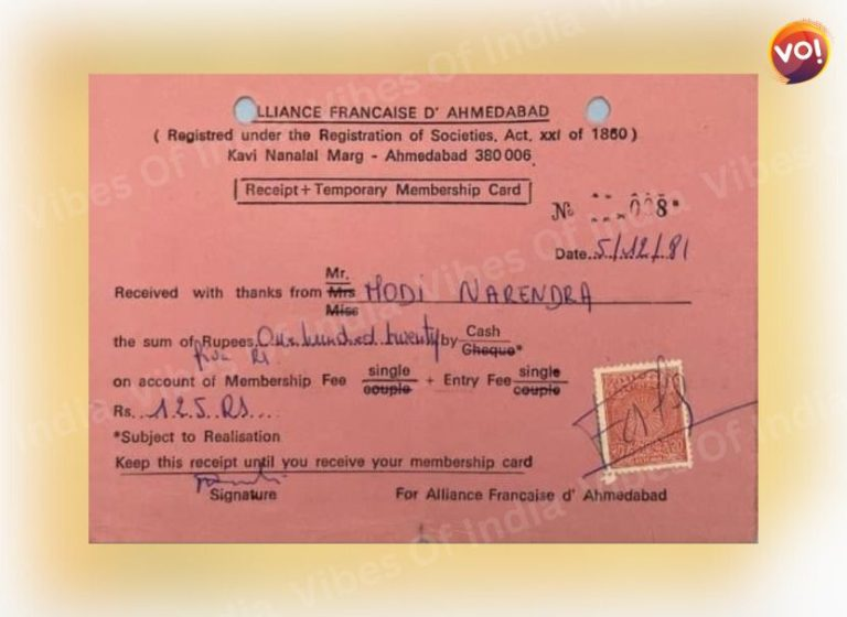 प्रधानमंत्री नरेंद्र मोदी ने पेरिस में अपने सम्बोधन में कहा कि 1981 में जब अलायंस फ्रैंकेइस (AF) अहमदाबाद की शुरुआत हुई थी, तब वह इसके पहले सदस्य थे। हालांकि, दिसंबर 1981 में उन्हें जो सदस्यता रसीद जारी की गई थी, उसका क्रमांक आठ था और उनकी सदस्यता संख्या ए-011 थी। मतलब उनसे आगे भी जरूर कुछ लोग थे।