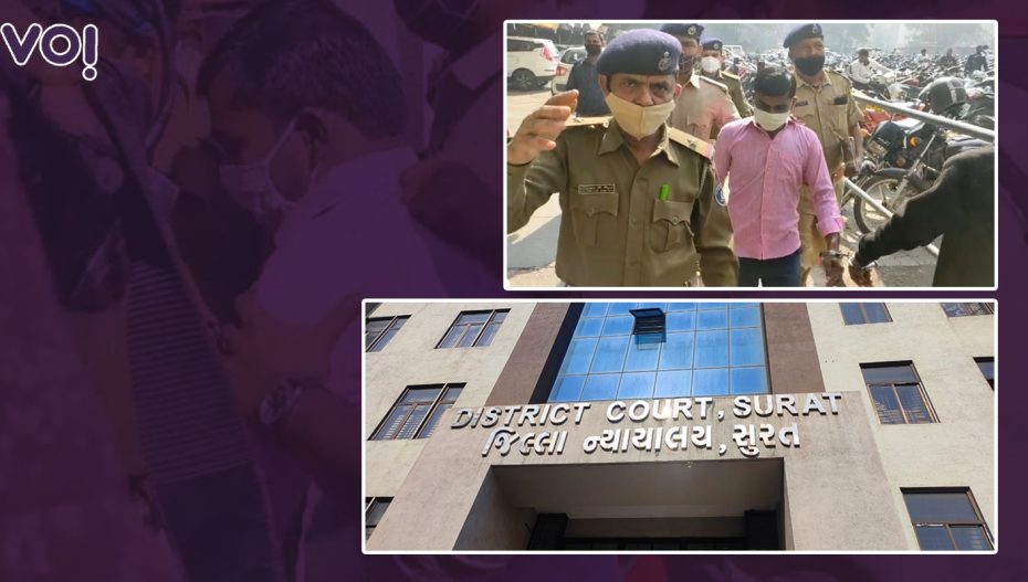 सूरत के हजीरा इलाके में 5 साल की बच्ची की हत्या के दोषी सुजीत को सूरत की एक अदालत ने उम्रकैद की सजा सुनाई है. सजा सुनते ही आरोपी ने खुद के निर्दोष होने का हवाला देते हुए जज की तरफ चप्पल फेक कर मारी , जिससे अदालत कक्ष में सन्नाटा पसर गया , बाद में पुलिस ने आरोपी को अपने कब्जे में ले लिया |