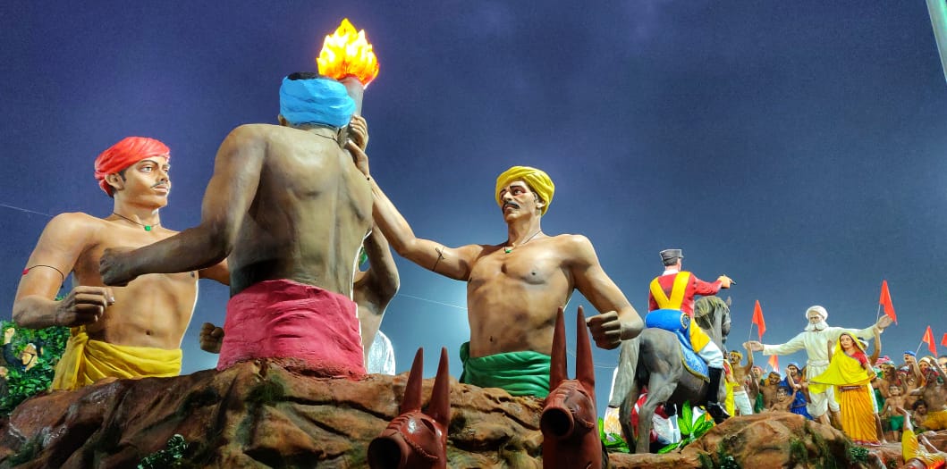 झांकी के सामने हाथों में मशाल लिए चार क्रांतिकारी क्रांतिकारियों की चार फुट ऊंची प्रतिमा ने झांकी को और भी प्रभावशाली बना दिया.झांकी के दोनों ओर लंबी गर्दन वाले विशिष्ट घोड़े, जो साबरकांठा जिले की पहचान जैसे पोशी क्षेत्र में प्रचलित हैं, प्रस्तुत किए गए।