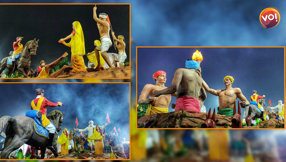 झांकी के सामने हाथों में मशाल लिए चार क्रांतिकारी क्रांतिकारियों की चार फुट ऊंची प्रतिमा ने झांकी को और भी प्रभावशाली बना दिया.झांकी के दोनों ओर लंबी गर्दन वाले विशिष्ट घोड़े, जो साबरकांठा जिले की पहचान जैसे पोशी क्षेत्र में प्रचलित हैं, प्रस्तुत किए गए।