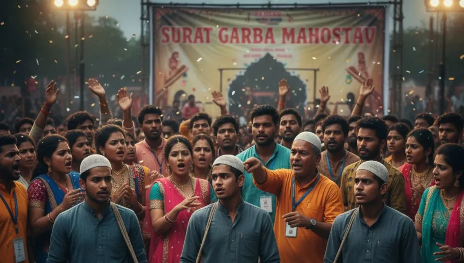 सूरत, गुजरात। नवरात्रि के एक भव्य आयोजन में उस वक्त हंगामा खड़ा हो गया, जब बजरंग दल और विश्व हिंदू परिषद (VHP) के सदस्यों ने मुंबई से आए तीन मुस्लिम ड्रमर्स के कार्यक्रम में हिस्सा लेने पर आपत्ति जताई। यह घटना सोमवार रात की है।