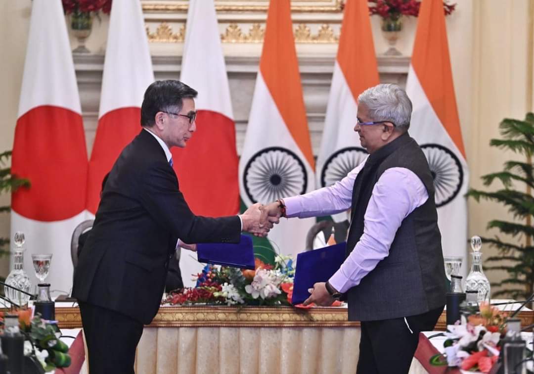 जापानी प्रधान मंत्री फुमियो किशिदा और भारतीय प्रधान मंत्री नरेंद्र मोदी की उपस्थिति में समझौता