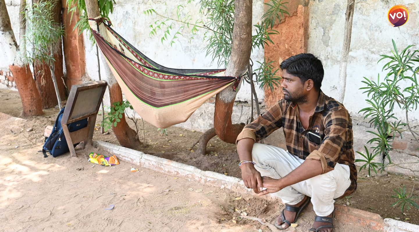 एलआरडी की परीक्षा में अहमदाबाद के एक सेंटर में बेहाल भावुक नजारा देखने को मिला। दंपति डेढ़ साल के बच्चे को लेकर दाहोद से परीक्षा देने पहुंचा था। महिला परीक्षार्थी अपने पति और डेढ़ साल के बच्चे को लेकर दाहोद से अहमदाबाद आई है। महिला परीक्षा दी और केंद्र के बाहर पिता बच्चे की देखभाल करते नजर आए। उन्होंने दो पेड़ों के बीच झूला बांधकर बच्चे को सुला दिया।