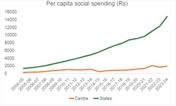 केंद्र सरकार द्वारा सामाजिक योजनाओं पर वादे के मुताबिक खर्च न करने की बात विशेषज्ञों की नजर से नहीं बची है। अर्थशास्त्री जयति घोष और सी.पी. चंद्रशेखर ने हाल ही में बताया कि पिछले दशकों में भारत में सामाजिक खर्च में जो वृद्धि देखी गई है, वह मुख्य रूप से राज्य सरकारों द्वारा संचालित है, जबकि केंद्र सरकार से उन्हें मिलने वाले फंड (Transfers) के हिस्से में कमी आई है।