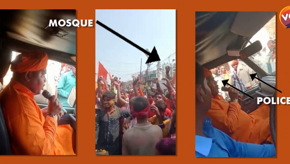 खैराबाद नामक एक छोटे से शहर में एक जीप के अंदर से भीड़ को संबोधित करते हुए एक वीडियो में भगवा वस्त्र पहने एक व्यक्ति दिखाई देता है। बैकग्राउंड में पुलिस की वर्दी में एक शख्स भी देखा जा सकता है।
