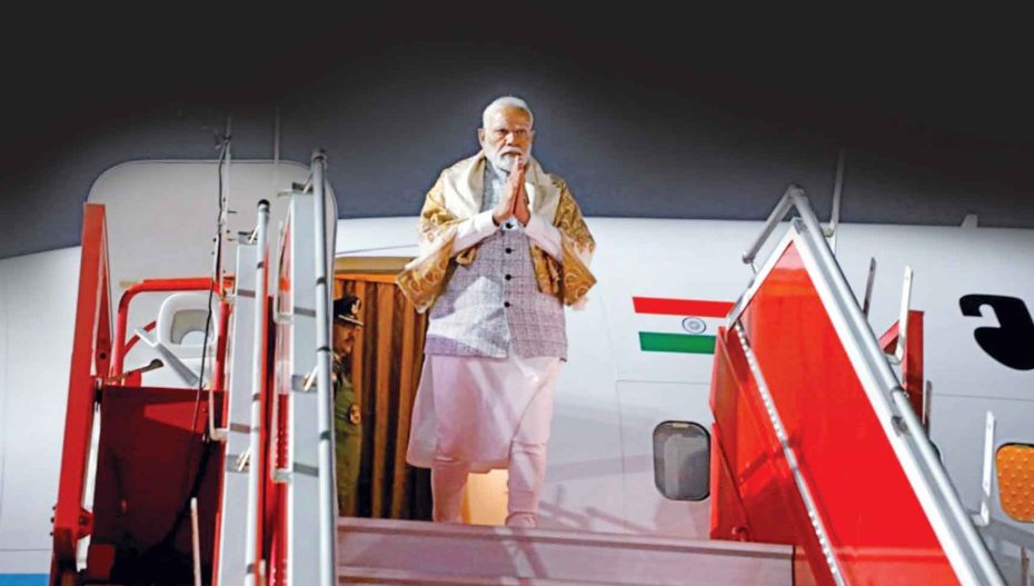 प्रधानमंत्री नरेंद्र मोदी सोमवार रात 10:20 बजे शहर में पहुंचे और प्रतिष्ठित वाइब्रेंट गुजरात शिखर सम्मेलन और संबंधित कार्यक्रमों में अपनी भागीदारी की शुरुआत की। हवाई अड्डे पर उनका स्वागत राज्यपाल आचार्य देवव्रत, मुख्यमंत्री भूपेन्द्र पटेल और प्रदेश भाजपा अध्यक्ष सी आर पाटिल ने किया।