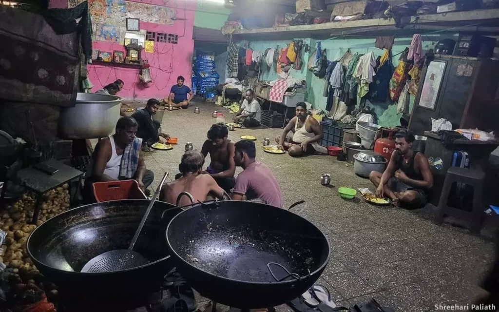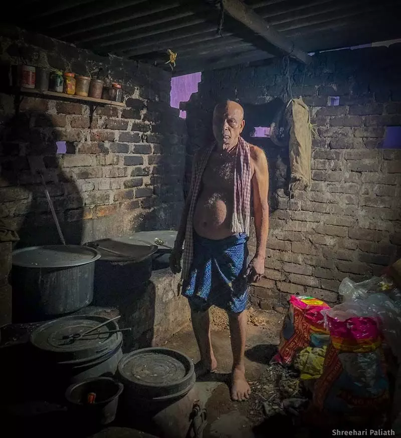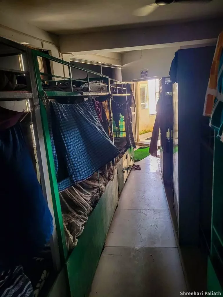 Akul Dandapani Nahak, a 54-year-old former powerloom operator from Ganjam who runs a mess on the third floor, sat on his foldable cot that was pushed against the pale blue-painted wall. Sacks of rice foreground the portraits of various Hindu gods on the wall, while a table fan desperately circulated musty air.