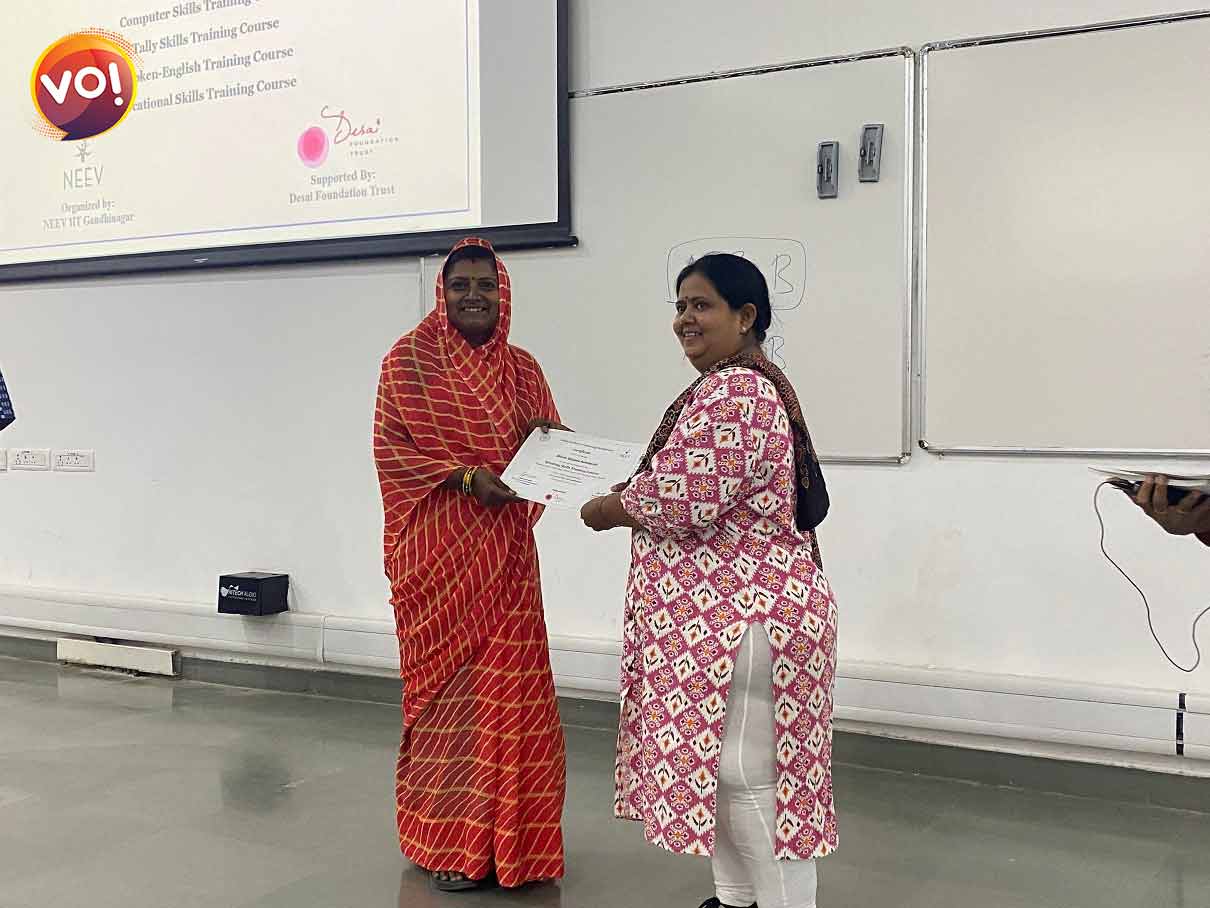 In this edition of Summer Skills Courses, a total of 145 people were trained at NEEV-IITGN, including 26 people in the Stitching Skills course, 30 people in the Beautician Skills course, 34 people in the Basic Computer Skills course, 26 people in the Spoken-English Skills course, 16 people in the Tally Skills course, and 13 people in the Vocational Skill course of wiring and CNC machining. Many of them have already begun to earn money as a result of their newfound abilities.