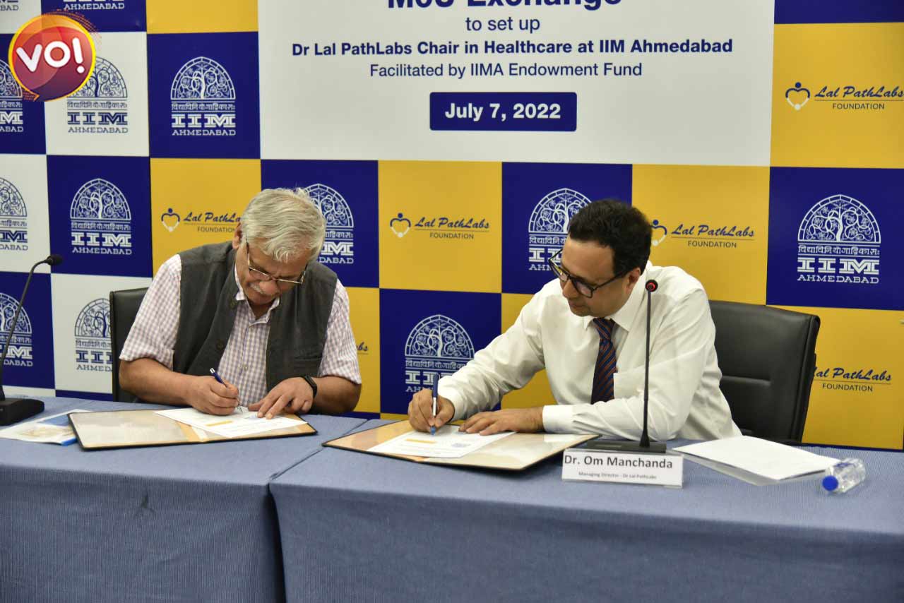 Indian Institute of Management Ahmedabad (IIMA) and Dr Lal PathLabs Foundation have signed a Memorandum of Understanding to establish the ‘Dr Lal Pathlabs Chair in Healthcare’. Professor Errol D’ Souza, Director of IIMA, and Dr Om Manchanda, Managing Director of Dr Lal PathLabs, signed the MoU at the IIMA campus on July 7, 2022. The Chair has been set up for an initial period of three years and has been facilitated by the IIMA Endowment Fund.