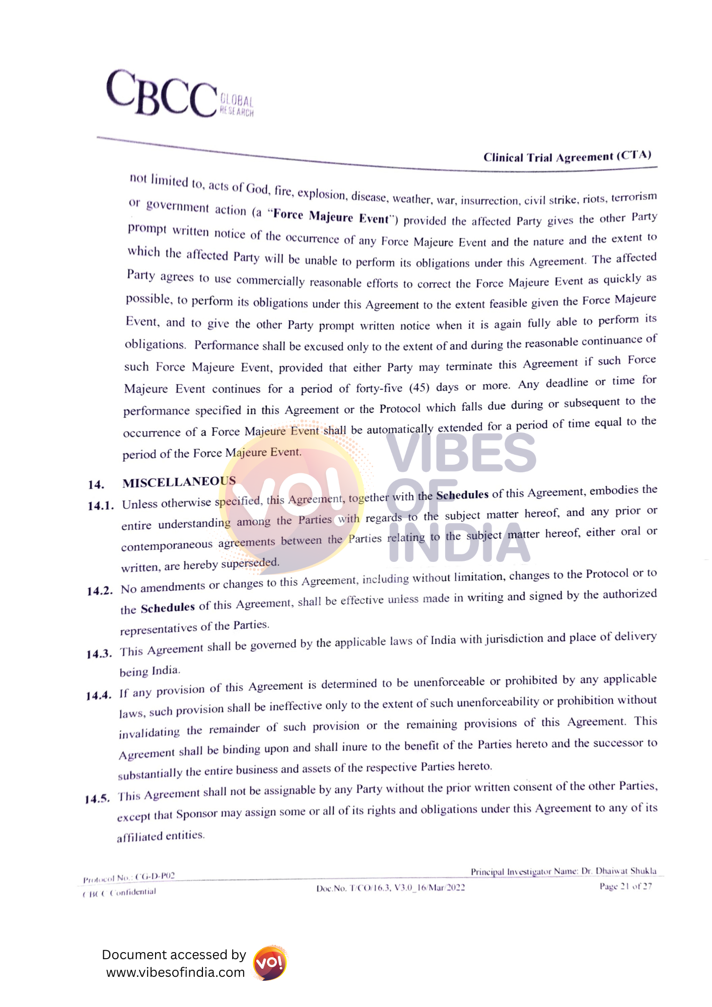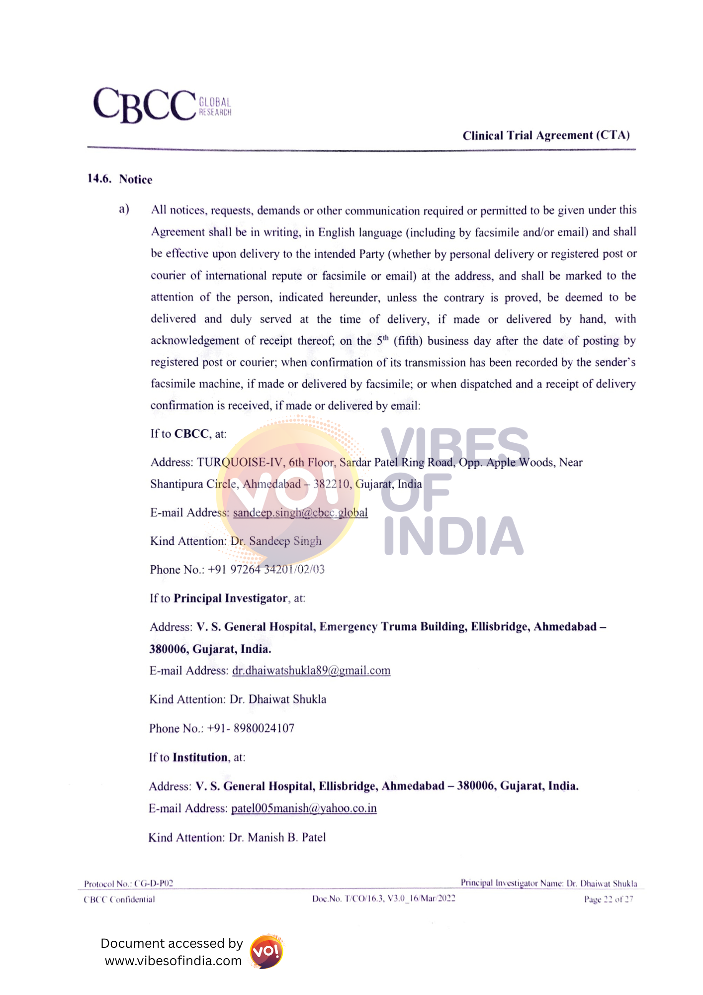 VOI took the CTA to two established city hospitals and pharmaceutical companies in Ahmedabad, neither of which found anything wrong, unethical, or unusual. In fact, the CTA clearly mentions that the trial must comply with all applicable laws, regulations, and protocols.