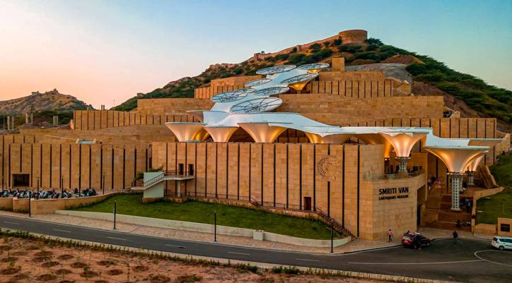 Smritivan is a remarkable example of modern architecture combined with sustainable design. It is the largest memorial and museum ever constructed in modern India, located on the Bhujiyo Dungar, a small hill on the outskirts of Bhuj, covering over 470 acres.