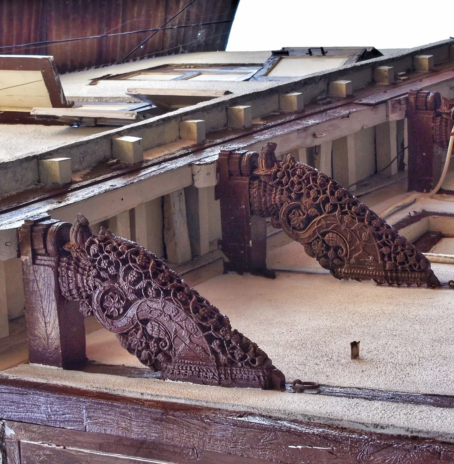 This style exhibits a mix of both Islamic and pre-Islamic periods. While door knobs and ceiling designs show a clear Irani/Persian touch, the construction betrays a 14th century story. Likewise, the balcony brackets are replete with grape carvings, an inexhaustible specimen of Persian architecture.