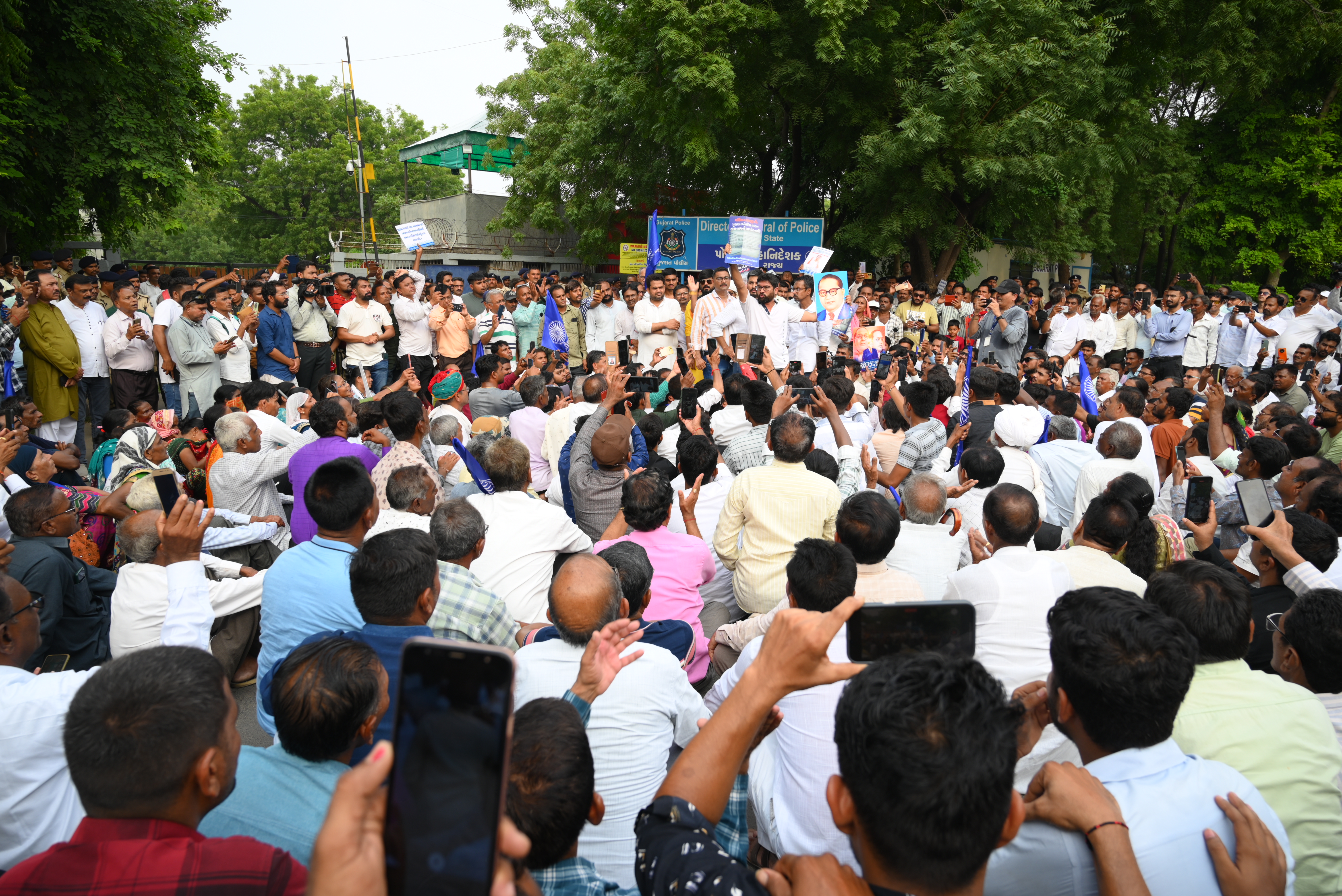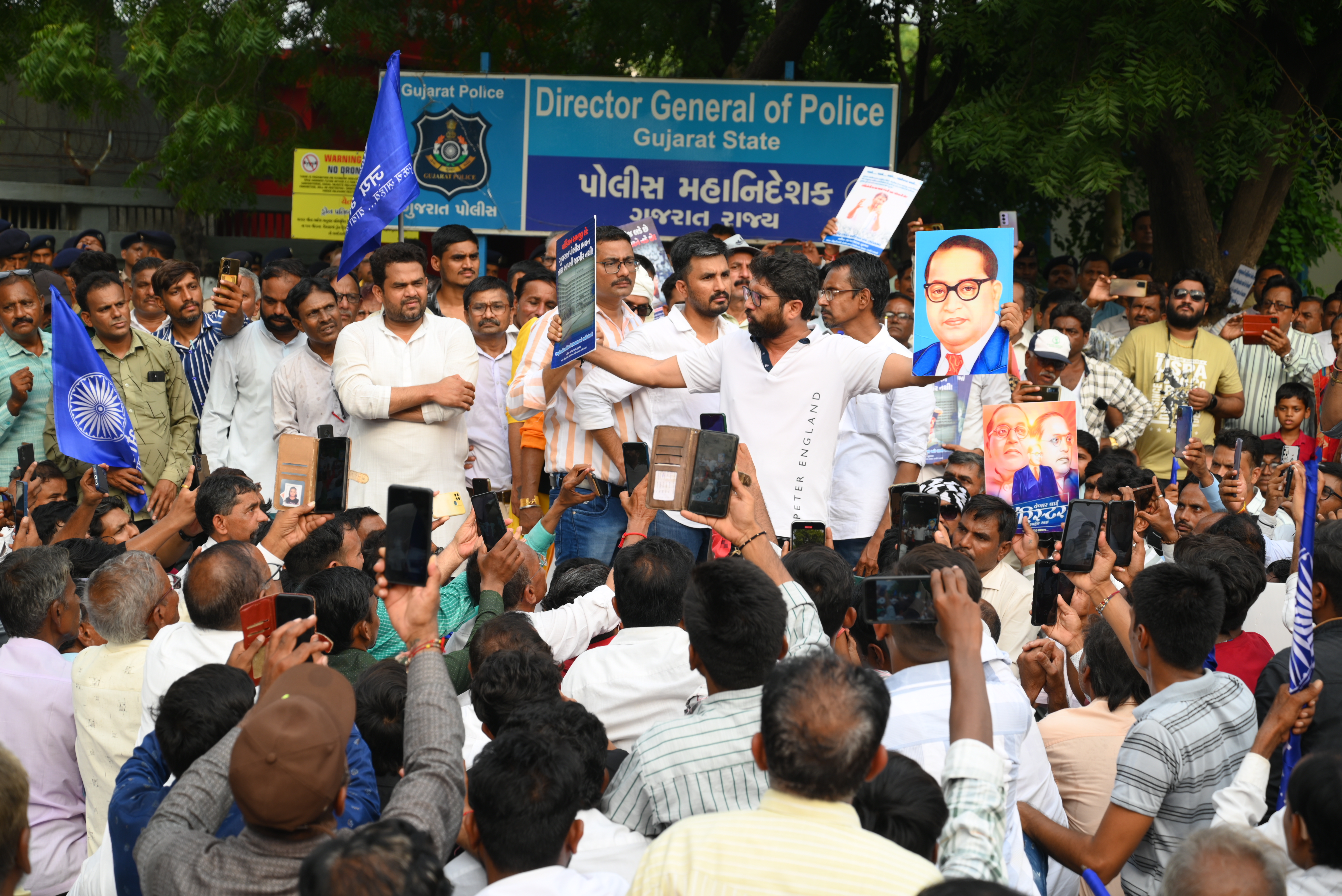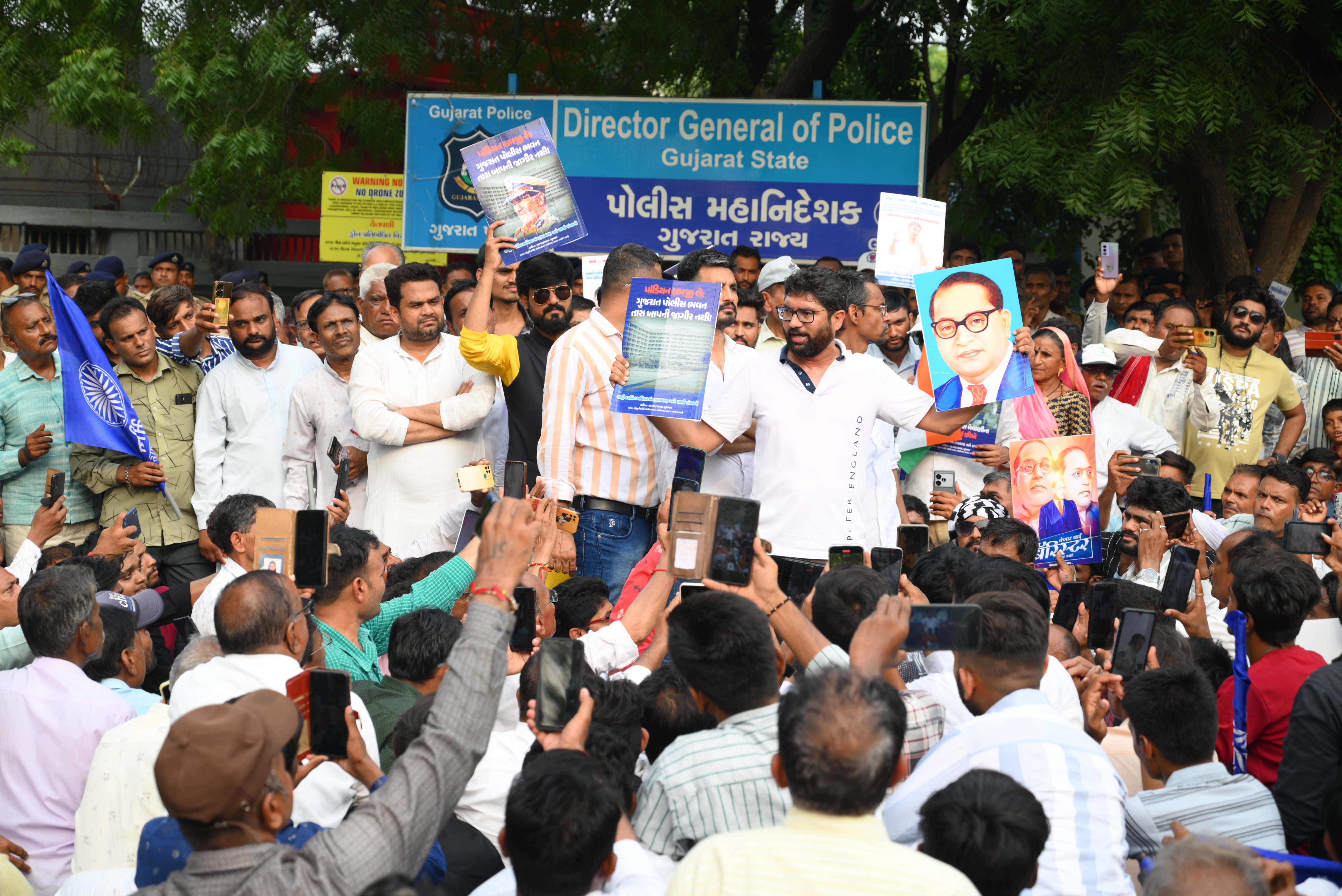 Dalits, marginalised community and civil society members besides the Congress from across the State gathered in huge numbers in Gandhinagar, the State capital, to express their solidarity with Dalit MLA Jignesh Mevani who has expressed threat to his life from an IPS officer.