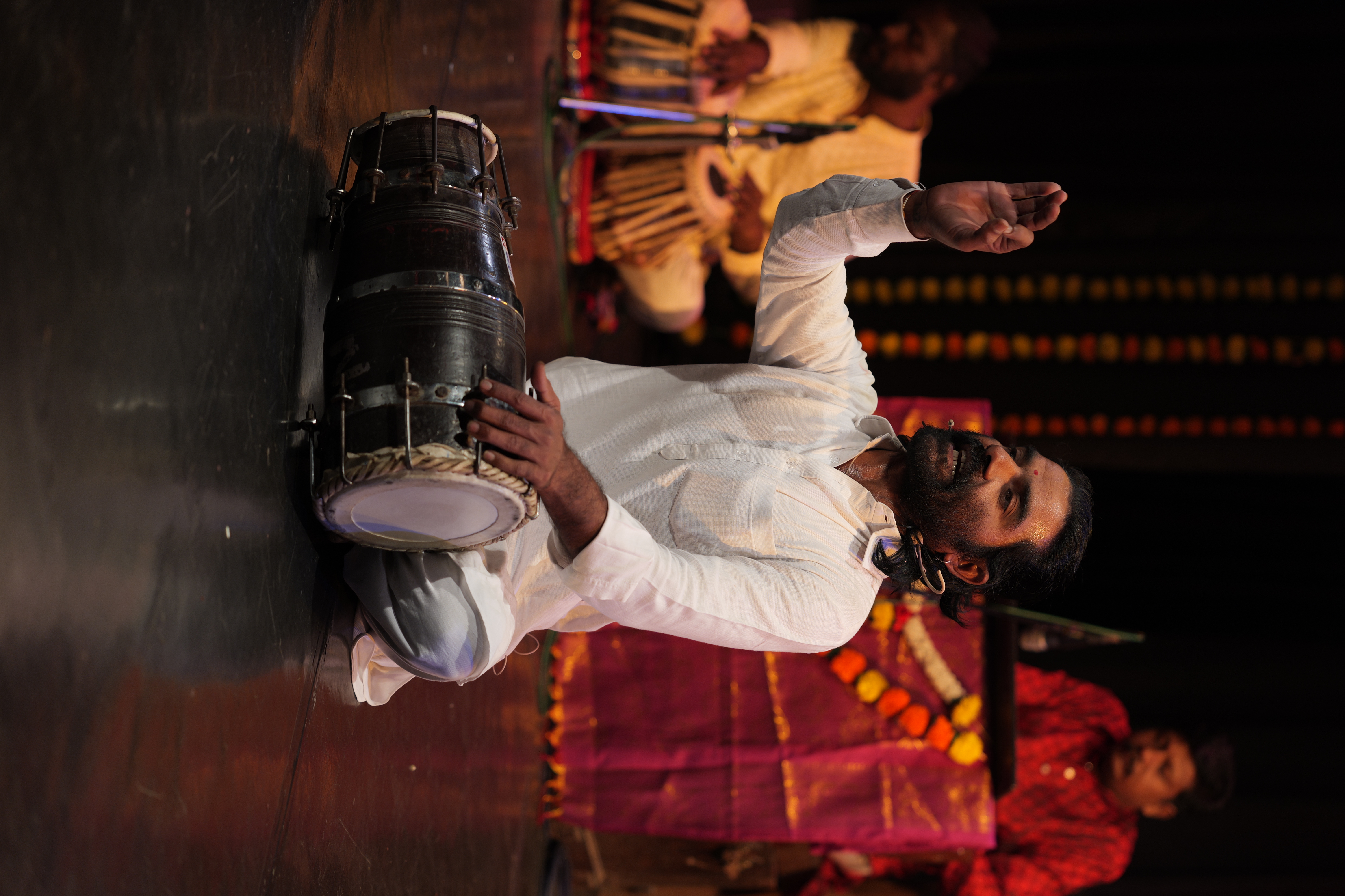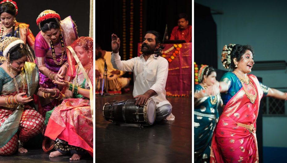 The musicians and actors in Love & Lavani are all borrowed from professional troupes. Much of the charm of Lavani lies in the dancer’s ability to engage with the audience and they pulled this off quite well in Ahmedabad, as they flirted with the men in the front rows (and in one case a bespectacled young man in the last row). Clad in heavy jewellery and the traditional nine-yard sari, they delighted the crowd with their singing and come-hither looks. The climax of the play is a lively Quali.