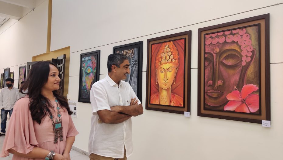 When we entered L&P Hutheesing Visual Art Centre the atmosphere was meditative and so was the theme of the art exhibition. The Way of Buddha, a solo exhibition by Ragini Fozdar showcased handpainted works in acrylic colours.