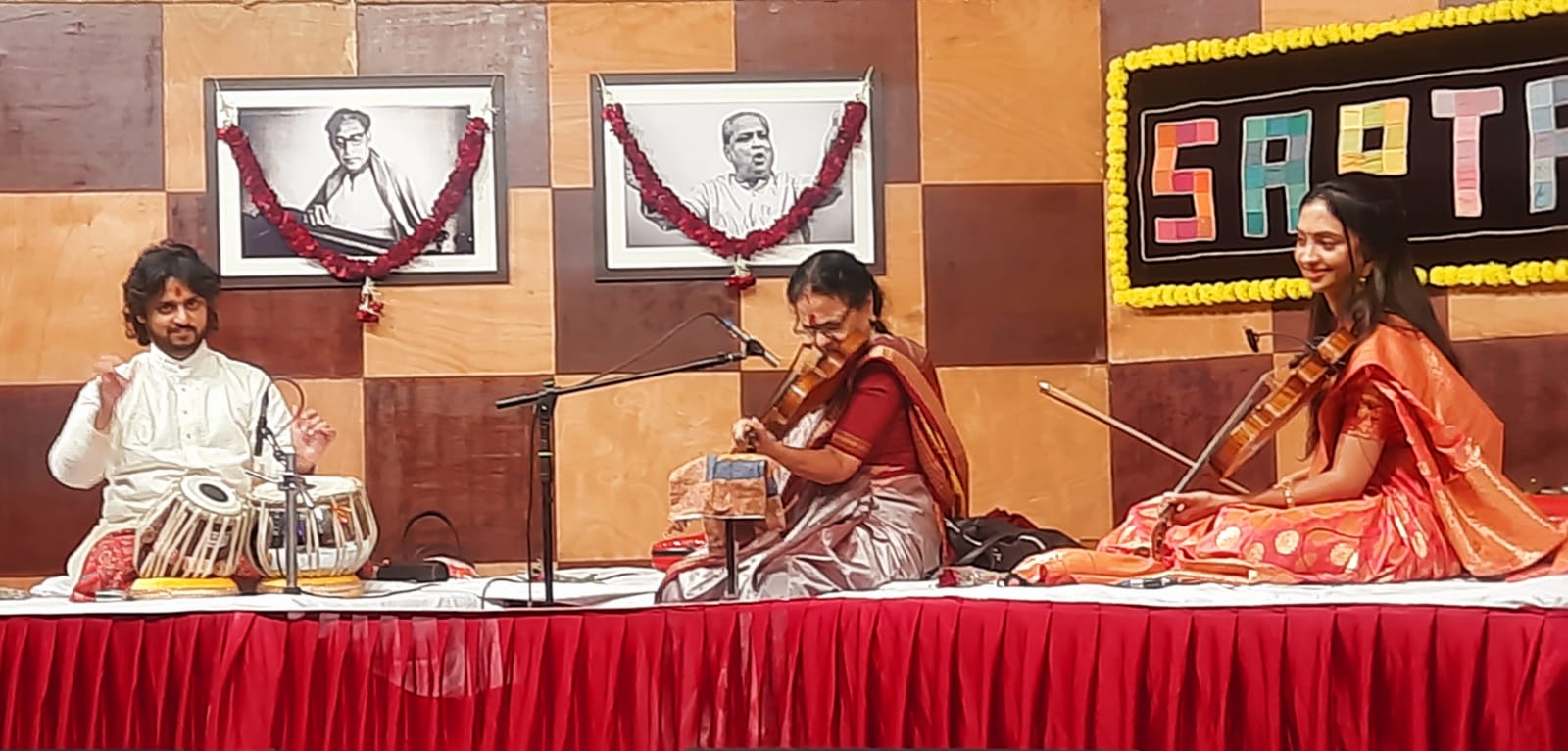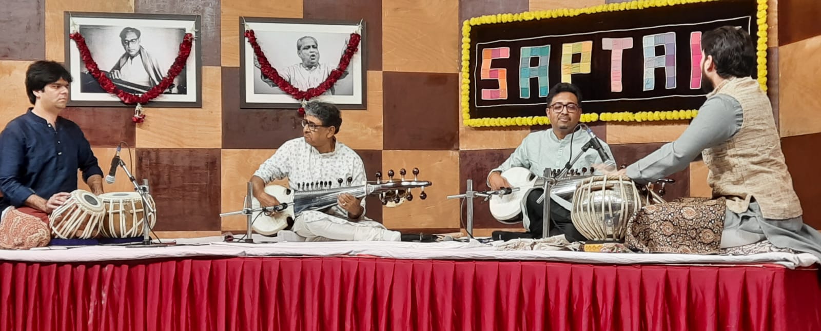 The first concert of the evening featured Alok and Abhiskek Lahiri on the sarod, accompanied by Sapan Anjaria and Tanay Rege on the tabla. The father-son duo began with Raag Jog and ended with Raag Charukeshi in an enthralling 80-minute performance. The powerful sound of two sarods playing in harmony (along with two sets of tablas) made for some truly joyous music.