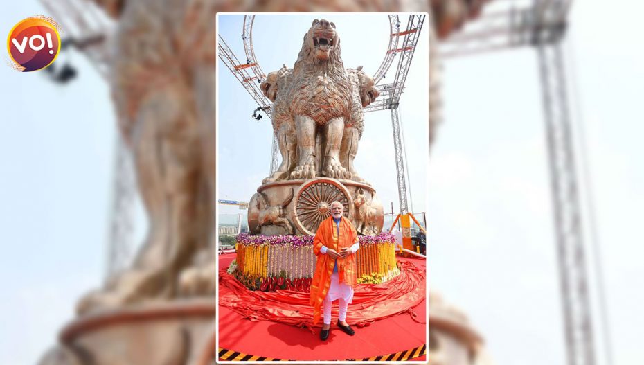 Prime Minister Narendra Modi unveiled the National Emblem cast on the roof of the new parliament building on Monday, July 11.
