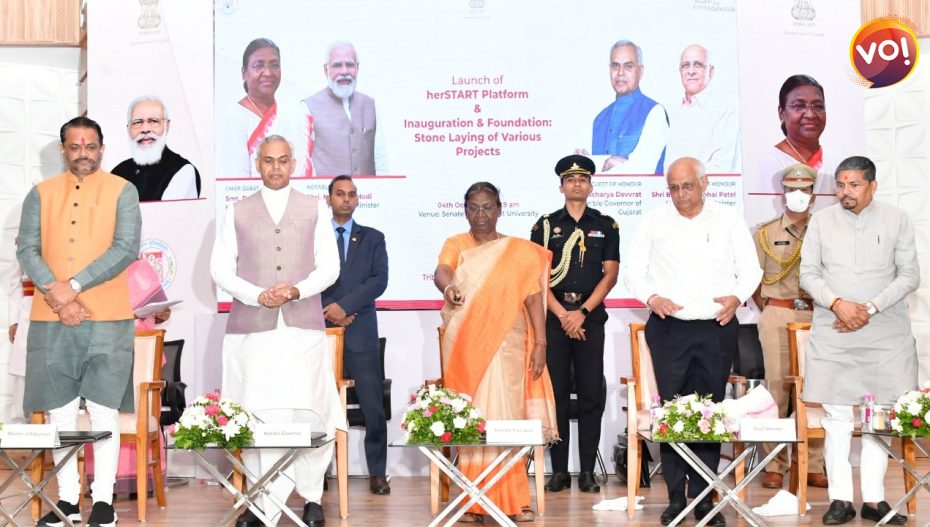 President of India Droupadi Murmu on Tuesday launched ‘herSTART’ – a start-up platform of Gujarat University, Ahmedabad. She also inaugurated various projects of the government of Gujarat related to education and tribal development.
