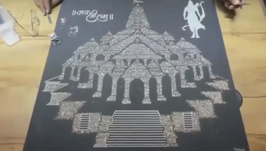 An artist from Surat has created an artwork of Ayodhya’s Ram Temple by using 9,999 diamonds. In a video shared on X, the artist was seen making a tweezer to place the tiny diamonds on a black base. A diamond merchant has also made a necklace on the theme of the Ram Temple using 5,000 American diamonds and two kilograms of silver. The necklace has been gifted to the Ram Mandir Trust.