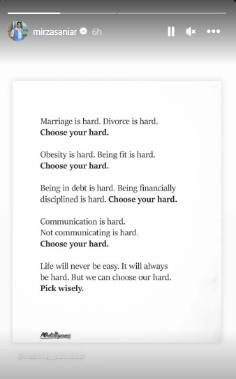 Earlier this week, Mirza shared a cryptic post on Instagram, reigniting divorce speculations. The post read, “Marriage is hard. Divorce is hard. Choose your hard…”