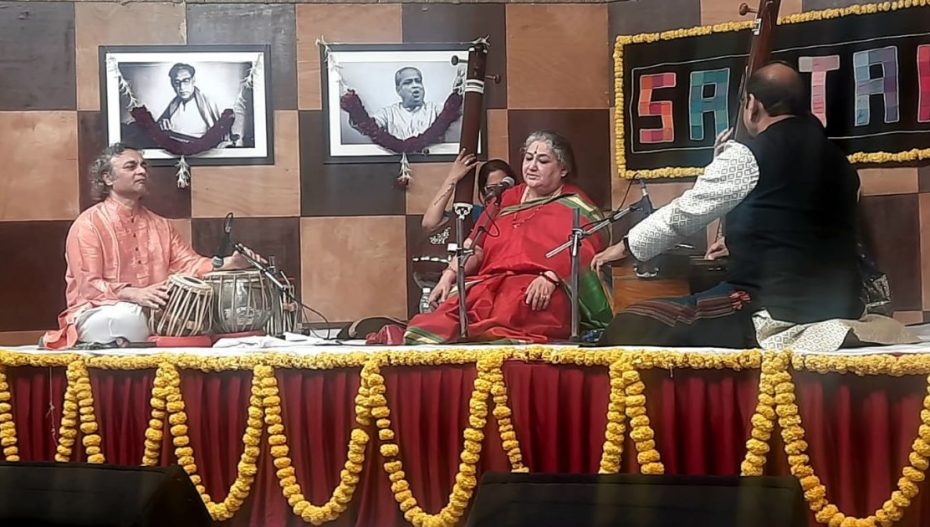 Resplendent in a red sari, the ever-popular singer performed Raag Darbari Kanada, accompanied by Aneesh Pradhan on the tabla and Sudhir Nayak on the harmonium.
