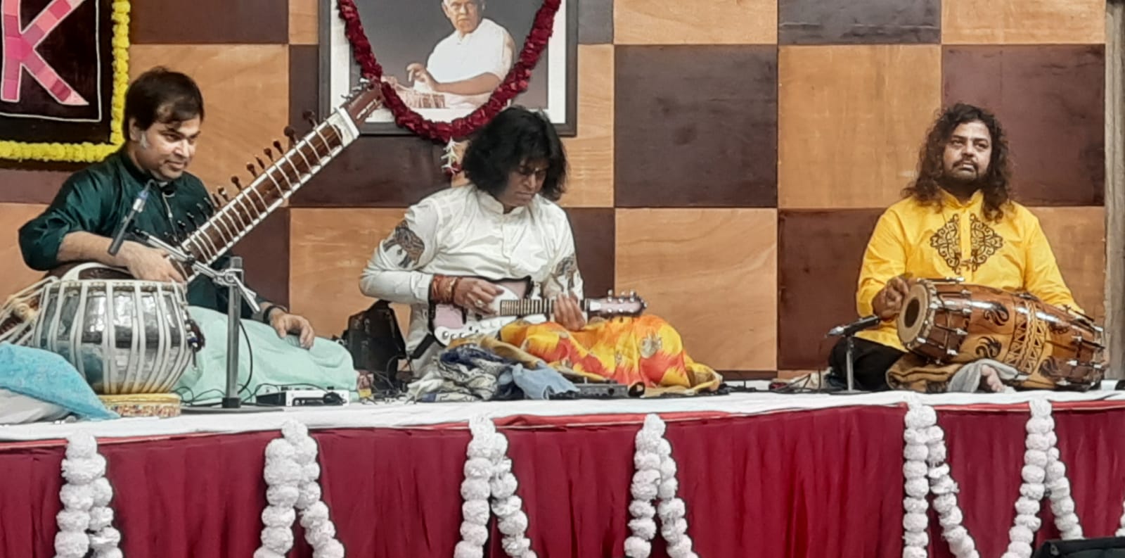 The other star performance of the evening was Pandit Venkatesh Kumar, who arrived on stage in a Covid mask, reminding us that the virus that brought the Saptak concerts to a stop for two years is still out there. But once he took off the mask and began to sing, the audience forgot all else and was swept away by the Pandit’s powerful voice.